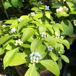 ╭❁︎ディクロア❁︎╮ 常山アジサイ 2年前 小さなポリポット苗でやってきたのが、株幅60センチ程のドーム状になりました。 (最初の投稿は2018年6月19日) 常緑だし成長も早いので、冬にすっからかんになる日陰の庭に置くのもおススメですよー。昨秋には青いメタリックな実も付きました。( °◡͐︎°)✧︎ そろそろ鉢増ししたいけど、引っこ抜くと枝がバキバキに折れそうです。( ̄▽ ̄;)💦 これは挿し木できるなかな?