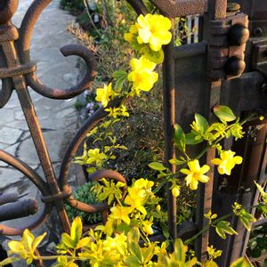 数日前夕方のpicですが… 西日を浴びて 黄金に輝く✨ 花もピカピカ🌼だけど葉っぱもなかなかの輝き!冬の寒さにも猛暑にも負けずの 逞しいヒマラヤンソケイ イエローバタフライ 初めて花開花した時はきがつかないほど葉っぱが目立つ🌱🍃🍃✨ 来年にむけて増やして行きたい植物の一つです🎶🐕🦺💕 この先はわたしのゆる〜いホワイトガーデンです