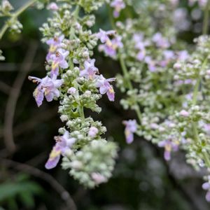東京都薬用植物園の花 ニンジンボク クマツヅラ科 西ヨーロッパ〜西アジア原産 花期6〜11月 夏〜秋にかけ穂のような薄青紫の 花を長期間咲かせる。 葉が朝鮮人参に似ていることから ニンジンボクの名が。関東以西の暖地なら育つ。