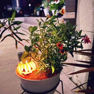ハロウィンミニバケツにソーラーライトを入れたら思いのほかイイ感じに発光しました🎃 実物はさすがにここまで明るくないですが、真っ暗闇だとオレンジが目立つ程度には明るいです✨バケツ(4個入)もライトもダイソーなので非常に安上がりw 肝心の花が暗過ぎてよく見えないですが、一応オレンジとピンクのジニアがチラホラ咲いています😅切り戻して整えたいけど、もう時期的に遅い…?