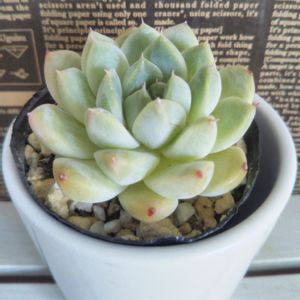 キューティ! 色もむちむち具合もとってもかわいい💕です! 昨年もこの季節に🆙していますが、色が違ったようです。 この夏は葉先のピンクが残っててます! 「キューティNEWS」タグで過去の姿も見られます!