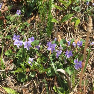 スミレの群生だっ! と思って近づいたら、、、 ツクシもいた! 春コラボ。まちなかが絶賛、春まつり。 スミレ スミレ科 スミレ属 スギナ トクサ科 トクサ属