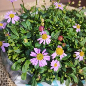 姫小菊(ブラキカム)✨ 見切り品の多年草を見かけるとその場から動けなくなってしまいます いろんな色があってテンション上がりましたが、ひとつで我慢した!薄ピンクカワイイ!😆