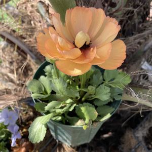 頂いたラナンキュラスキプリアプリコットが咲きましたよ𓂃܀𑁍 淡いオレンジ色が可愛(⁎ˇ◡ˇ⁎)🧡
