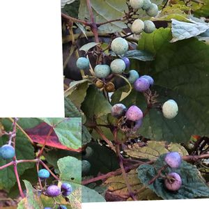 アオツヅラフジでもノブドウでもないみたいな綺麗な葡萄みたいな実をみつけて、調べたところこれが「山ぶどう」というもののよう🍇 大きさはアオツヅラフジやノブドウ程なんだけど、本当にちっちゃい葡萄! 綺麗だなぁ✨ 酸っぱいみたいで、普通はジャム等にして食べるそうです。 ワインにもできるみたい🍷 これが今スーパーなんかで売っている大粒や小粒葡萄の原種なのかなぁ?