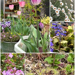 おはようございます⛅️ 今庭 春爛漫💕 ↗️ローダンセマム アフリカンアイズ ➡️アジュガ↘️吹き出したコキア ↙️タイム ロンギガウリス 素敵な週末を💐🤗