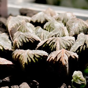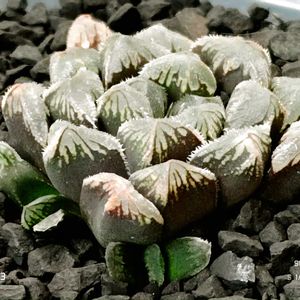 ●ススキノキ科 ツルボラン亜科 ●ハオルチア属 ●雪ウサギ×オブツーサ錦黄色斑😻😻 葉が白くなってる…🤔🤔 この時期はこれが正解なのか?🤔🤔🤔
