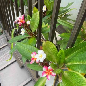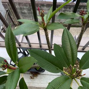 プルメリア「ディバイン」 ベランダの外側から。 今のところ花は少ないですが蕾は沢山付いています😊