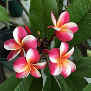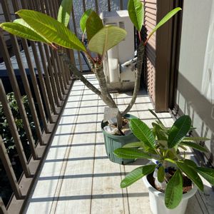 プルメリア 「ディバイン」と「ドワーフ・シンガポール・ピンク」 この2鉢だけ眠らないで頑張ってます😃 暖かい日が続いているので、本当はこの時期してはいけないのでしょうけど😅昨日から日中の1〜2時間だけ日向ぼっこさせています😀 でもちゃんと忘れすに1〜2時間で 取り込んでいます😊