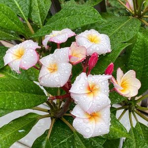 Plumeria "Mini White" 2020年の初開花以来毎年開花してます! ミニ・ホワイトは花が咲きやすいし種鞘も付くし、ほんのりだけどいい香り、花も可愛い、ブーケ咲きしやすい。 初心者向けのいいことずくめの品種です😊