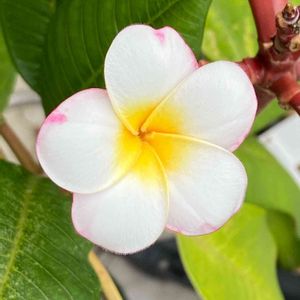 プルメリア ジャングルジャックス「ミニホワイト」今年唯一花が咲いた子です💕 本当に良く咲いてくれました👏👏👏 ありがとう💞😊 また来年咲いてくれますように🙏 先程前の投稿の時に最高気温15°〜10℃で取り込むと記載しましたが、最高ではなく 最低気温でした💦間違えましてすみませんでした🙇🏻♀️