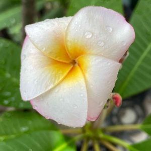 プルメリア「ミニ・ホワイト」 今朝から雷雨凄かったです!⚡️☔️ その凄さは何処へやらとすっかりいい天気☀️