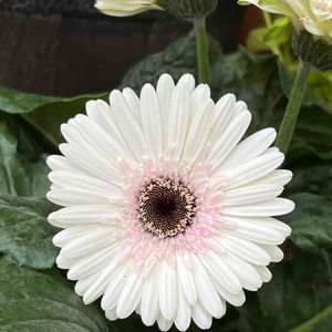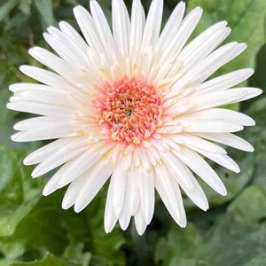 ✽+†+✽ ガーベラ ✽+†+✽ 冬越しのガーベラが真夏に咲きました。 白いガーベラですがたぶん元は違う色合いだったと思います。 きれいに咲いてくれてとっても嬉しいです。