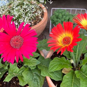 夏の間、葉っぱでワサワサだったガーベラ🌸 葉っぱを少しすいてあげたら 次から次へお花が咲いてきた💕