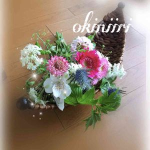 お気に入りの籠に💖 お気に入りのお花たち( ˊᵕˋ*)🌼 それだけで可愛い~💞