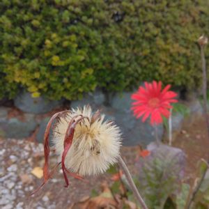 ガーベラ 全部綿毛にならないで、残った花びらが、ちょっとウサギの耳に見えてきました。