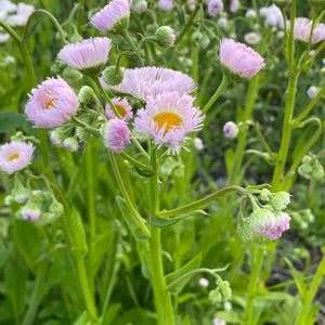ハルジオンがあちこちに、風になびいて咲いてます😄 🌱北アメリカ原産、花期4〜6月、 キク科ムカシヨモギ属多年草 🌱そっくりなヒメジョン花期は6月〜10月 ハルジオンは花びらが細い、茎が空洞、葉っぱの付け根が茎にしっかり巻いてる^ ^ 😅ようやく解りそうな気がします😅