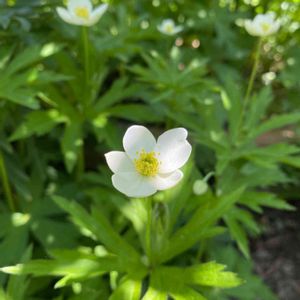 フタマタイチゲ?頂いてからニリンソウかと思ってたのですが、野草のソレが咲いてる時に我家はまだまだ🤫咲いてきました❤️ どうやら、フタマタイチゲ、と言う植物🌱 🌱北海道自生、花期5月〜6月 キンポウゲ科イチリンソウ属。 可愛いく、デリケートそうなんですが、どんどん増えるので、場所決めないと、みんなフタマタイチゲ庭になっちゃう💦 葉のつけねから3本ほど出る花芽にそれぞれ咲きますが、切花にしても、咲いています😍 でも、肥料無しで元気の可憐野郎です😁💕アネモネカナデンシスかな?とも迷ってます😅