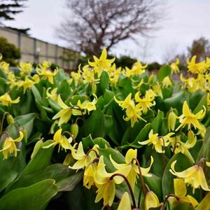 今にも降りだしそうな曇り空 暗いので 機嫌悪いのか〰️(¬∀¬)(¬_¬) カメラ目線の子が居ない〰️😅 キバナカタクリ