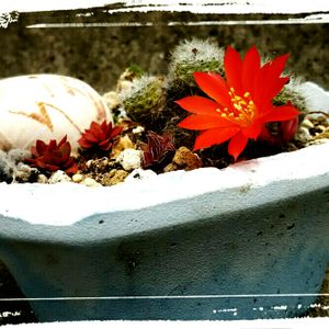 放置🌵から、真っ赤なお花が咲いていて、ビックリ〰⚡👀‼ でも、真っ赤なお花って🔥✨って可愛いな💖