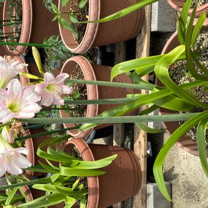 ミニアマリリス その後…… …………………………………………………… 8月7日に投稿した、在庫処分ミニアマリリスのその後です。 アマリリス自体初めてで、どう育つのかよく分からないのですが、6球とも葉っぱもりもり元気そうでなにより😄 葉っぱはあまりミニサイズに見えないけど、君たちミニアマリリスなんだよね……? さすがに今年はもう花は咲かないのかな? 適当にまとめ植えしたけど、ひと鉢ずつに分けた方が良かったかな〜。