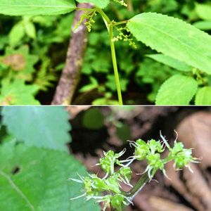 7/20 日光植物園 筑波山でも見たんだけど、雌花序がないなぁ❓と思っていたら、ここにも雄花序だけの「ムカゴイラクサ」がありました😊 雄花序の方が早くて、メス花序は後から出てくるみたいです。 ⬇️の写真 去年の8月の筑波山のアルバムに、ツンツンした雌花序が写ってました。