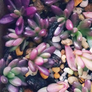 紫ベースの寄せ植えかんせーい! もっと色数絞ってクールな感じにするつもりが賑やかしてしまった 鉱物が好きなのでいつか多肉とコラボさせたかった! もっと鉱物と多肉一緒に飾りたいなー!