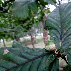 おはようございます☺ どんぐりが目につくようになりました♪ 形や殻斗(帽子みたいなとこ) 🌿も色々~ これは、🌿がギザギザなし、 殻斗模様が鱗状 マテバシイでしょうか! 今なってる実は 去年からのもの。 だから、ドンクリ凶作があるんですね~ マテバシイ炒ったら美味しいそうです。