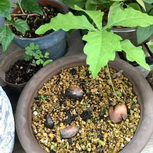 去年散歩中に拾ったドングリ 発芽は嬉しいけど… 途方にくれます