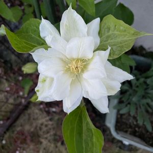 及川フラグリーン クレマチス ソングス 初めてのつる性クレマチス 株自体はそんなに立派に 育っていませんが ようやく花を咲かせてくれました✨ 大げさでも何でもなく これまで10回以上は鉢を倒し 土はこぼれるし枝も折れることあり かわいそうなことをしてきました💧 今朝も大風で倒れ 土を補充したところです💦 倒れるたび風対策してるんだけどな😅 土:市販の培養土に軽石(小粒)3割