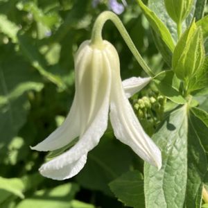 ベル型のクレマチス ベティーコーニング 一つ目が咲きました😊 直径2センチほどしかない花ですが、なんてかわいいんでしょう。 昨年及川フラグリーンさんの通販で購入👛 香りがあるとのことなので、こちらも楽しみです😊