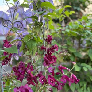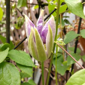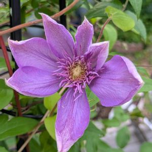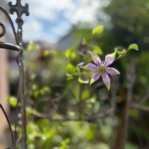 今年お迎えしたクレマチス ブルーライトが一輪だけ咲いてます💜 来年はもっと花数多くなるかな😊