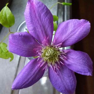 クレマチス ブルーライト🌸 去年、駿河のクレマチスの一年苗🌱を見切り半値で購入。約150円程😅 一番花開花しました💕 蕊が特徴的で色味も藤色で綺麗です☺️