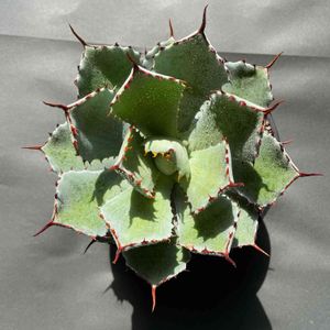 アガベ・クリサンサ 子供なのに赤棘がツンツン(。゚ー゚)σ魅力的😊❤️ お迎えしてから3ヶ月ちょっと 少し大きくなりました.。o(♡︎) どんな棘に化けるか楽しみ🎶