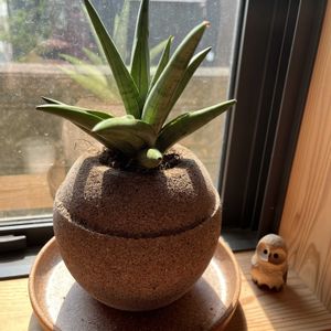 サンセベリアを 植え替えてみました! この鉢は下に水を浸して 必要な分だけ吸い上げる 画期的な鉢です! 大阪にあるご自宅兼店で 買いました!
