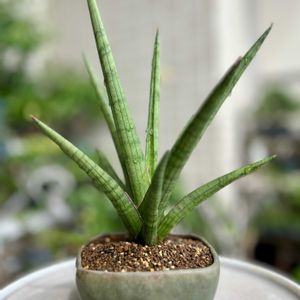 サンスベリア 品種はボブ 新横浜のザ・ガーデンさんから頂いてきたのを、暖かくなったので植え替えしました pic2は根洗後の状態 土は水捌けよくするため盆栽用土にしました
