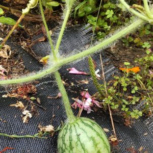 今朝、雨が止んでいたので、前回やり残した畑の草取りをしました。 すると、長さ5cmぐらいの小さな🍉が生ってるのを見つけました🤗 流石にこれを食べられるまでに成長させるのは難しいと思いますが、かわいくて見ているだけで楽しくなります🍉🎶