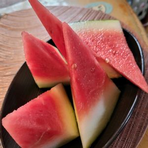 我が家の家庭菜園西瓜、今年最後の黄色小玉🍉 赤の大玉🍉には及びませんが、これもなかなかの甘さで美味しかったです🤗 ただ種がめちゃくちゃ沢山入ってて、食べる時に小さな種をポッポッと出すのがちょっと面倒くさかったです😅 娘婿さんは昔から出さないそうで、いつも🍉と一緒に種をポリポリ噛んで食べてます😂 今年の🍉さんありがとう💕 また来年も美味しい🍉をお願いします🎶