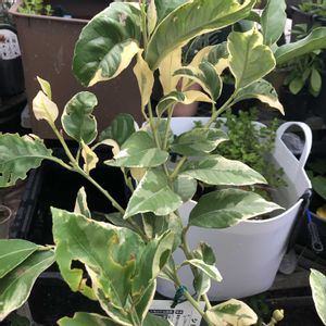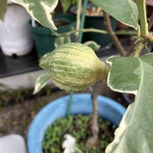 🏷️2の付く日は斑入りの日 🍋斑入りピンクレモネード 娘のお庭で 1つの実を付けてました。 実をつけさせるのは、 大変だったとか (鉢植え🍋 )