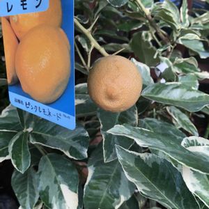 レモン🍋 ピンクレモネード 7年目👀⁉️程にして初めて実を付けました♪‼️ 葉も実も斑入りで🤩綺麗なので楽しみだった❗️😃 果肉はピンク🩷らしいので収穫がもっと楽しみ😊