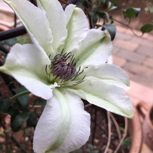 昨年初夏に生産農家さんから購入させて頂きました。枯れ枝の状態で送られて来たので少し心配しました。5月初旬に一輪、そして一輪と咲き、散る。今年初花をみることができました。希少なクレマチス 原種カザグルマには可憐な美しさがありますね。