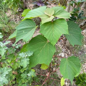 ヤマイモ、野鳥がムカゴを落としたのでしょうか。勝手に生えて数年目。 プランターの中に芋があるのかしら。 掘ろうと思いながら年月が経ってます。