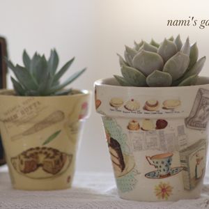 モルタルデコ📖📚制作で余ったシートをリメ鉢に使ってみました🪴🎨 ………………🖌🌱…………………… いよいよ💥 多肉沼で溺れそうです🌀