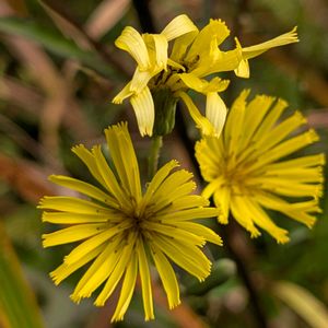 初めての出会いですが、おそらくオオニガナだと思います。たった一本生えていました。 オオニガナ(大苦菜) キク科 フクオウソウ属 多年草 本州の近畿地方〜東北地方に分布 里山〜低山の日当たりの良い湿地に生育 高さ50〜100cm。茎は直立、花序以外は分枝しない。 葉は互生、葉柄には翼があり茎を抱く。 葉は三角状矢羽形、羽状中裂〜深裂するがトゲはない。 円錐花序に頭花が10〜20数個つく。頭花は約4cm、淡黄色〜黄色。 総苞は太く、長さ12〜14㎜。内総苞片は12〜13個。外総苞片は2列つき披針形、鈍頭。 頭花の小花は25〜30(〜39)個つく。 花期9〜11月 9月29日撮影 北茨城市