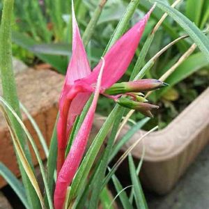 友人から貰ったアナナス、三年目?にして開花しそうです。子株も大きくなってきたし。パイナップルの仲間なのに耐寒性もあり良いこ(*´ω`*) ビルベルギア・ヌタンスなんてカッコいい名前があるんですねこれ😅
