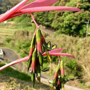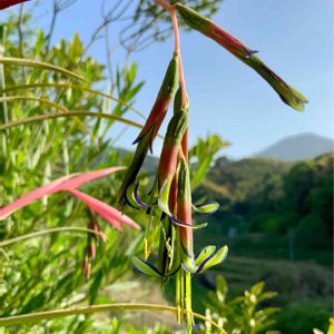ヨウラクツツアナナスが咲いています。 一年前 この花の名前をここで教えてもらいました。 初めて投稿したのが ー この花の名前を教えて ー だったんです。 難しい名前やっと覚えました。 ٩(^‿^)۶