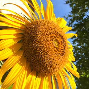 向日葵。日輪草。2022.8.1 am6時50分pic。今日も猛暑です。2メートルくらいあります。太陽の日差しが朝から眩しい。8月は平穏な日々でありますように。キク科ヒマワリ属。