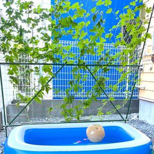 『白ゴーヤのgreenカーテン🌿』 去年の種から発芽させようと 試みたけどあえなく失敗😢 なので1週間ほど前に 仕方なく苗を3本 買ってきちゃいました😁💕 去年初めて挑戦したら 下の方がスッカスカに なっちゃったので今年は ちゃんとお勉強👓📖✏ どうやら本葉が5枚程になったら 親ヅルの先を切らなきゃいけない とのことなのでチョキンしてみました✂ ワッサワサのgreenカーテンに育てるコツ等が ありましたらご教示ください🙇💕 立派なgreenカーテンに育ちますよぉに🙏🌠 メアリーの居るところには 去年とったアサガオの種をまきました😊 夏が楽しみだなぁ😆🌱