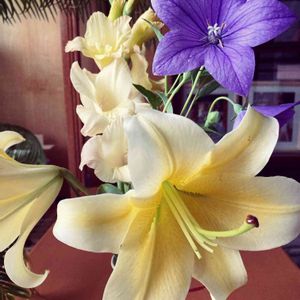 おはようございます☁ いつもの通りがかりの花壇で撮影📸 広さは8畳程度の場所ですが、 四季折々の花を育ててくれてます。 今回は下記の花たちが綺麗でしたよ🪻 ◯黄花のスカシユリ ◯ハタザオキキョウ ◯蕾が膨らんだユリ(カサブランカかも) とアジサイ 今日も一日、頑張って参りましょう😊