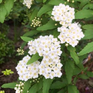 小手毬 白くて、枝のしなりそって 小さい手のこぶしサイズが沢山